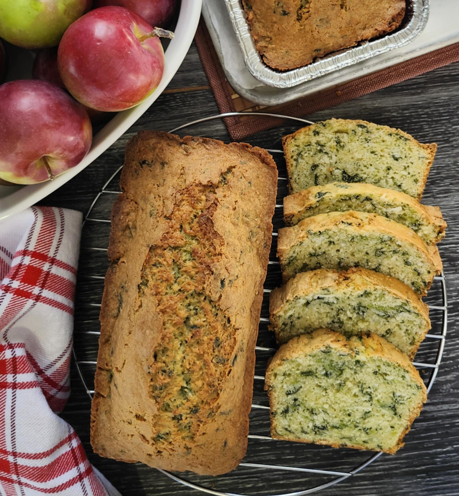 Surprenant! notre fameux pain aux épinards et noix de coco, santé et légèrement sucré, un délice!