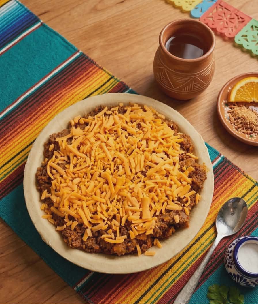 Un délicieux mélange de boeuf haché, avec une petite touche de légumes (poivrons rouges, oignons et céleri), le tout juste bien assaisonné, recouvert de fromage cheddar.