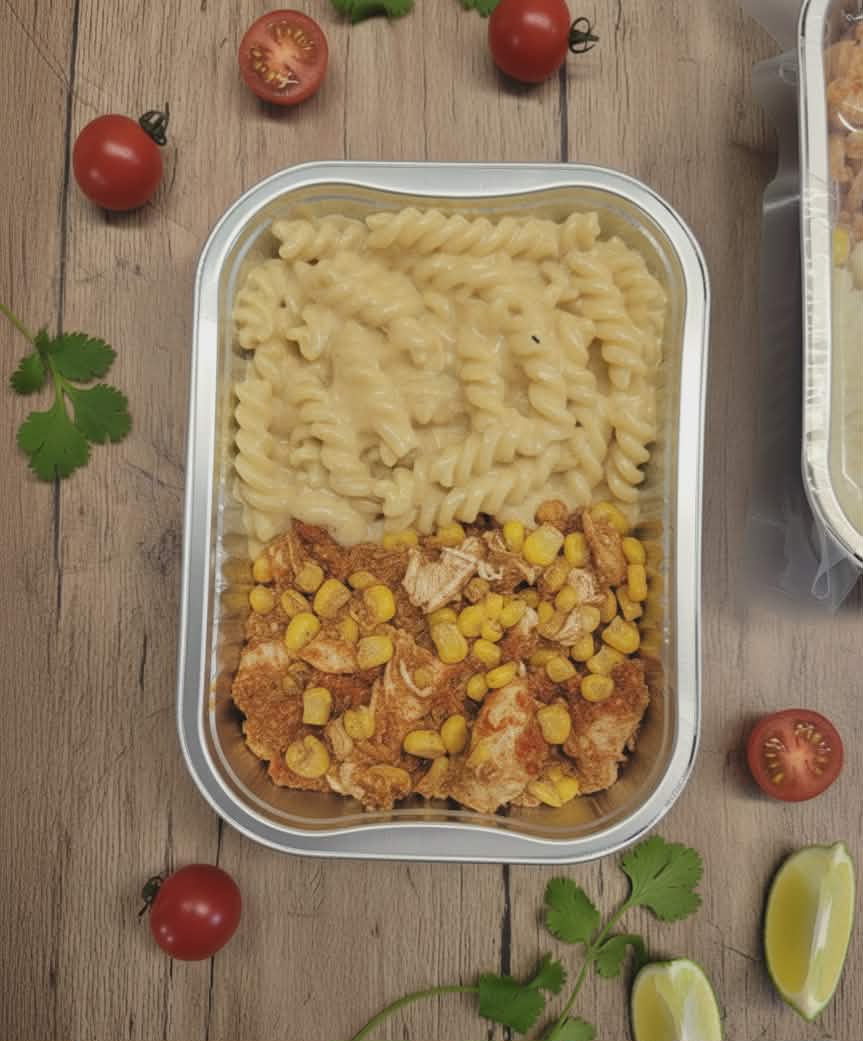 Lanières de poitrines de poulet saisies et cuites lentement dans une salsa servies avec des rotinis à la crème de cheddar!